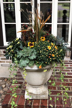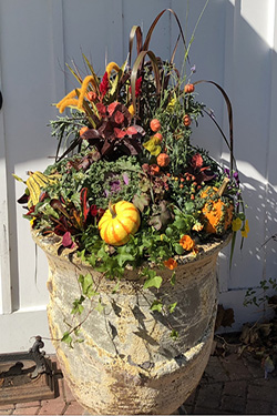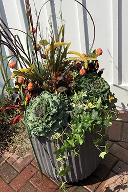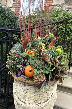 When Indian summer arrives it's time to refresh your planters with colorful mums, gourds, pumpkins and grasses.