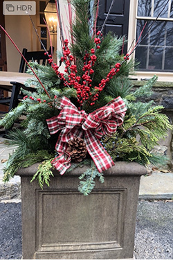 We also create beautiful fireplace mantel displays, stairway garlands, and custom wreaths.